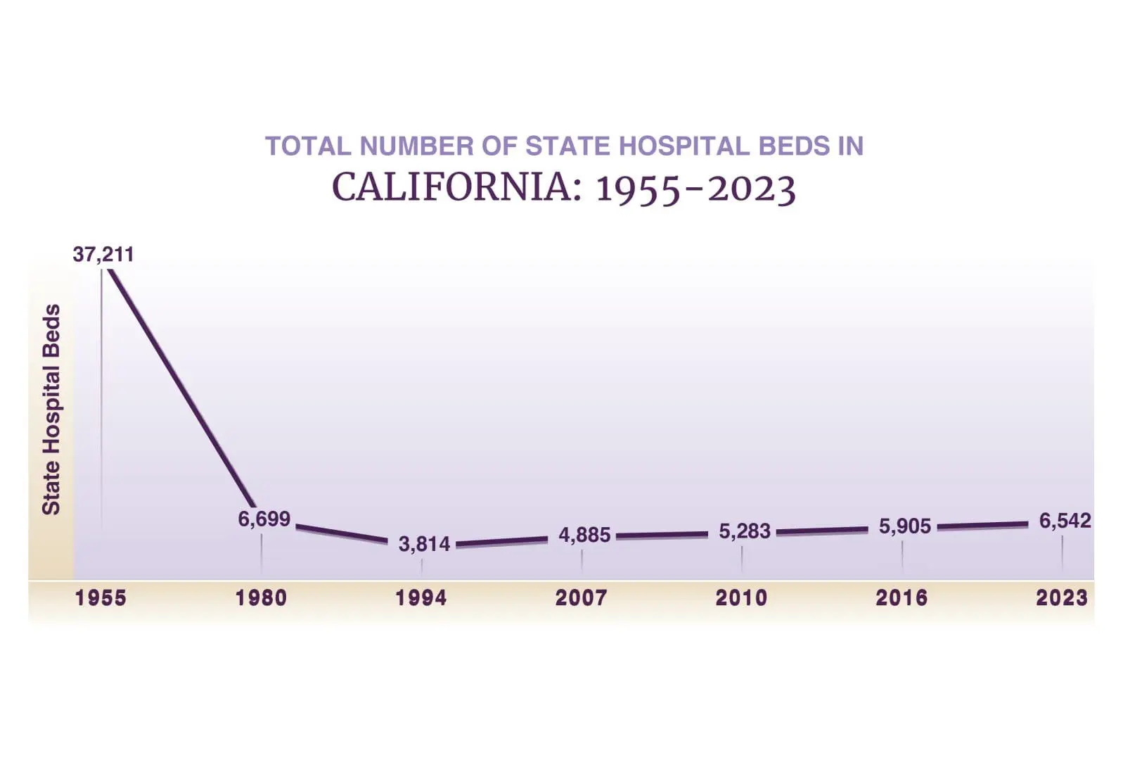A minimum of 50 beds per 100,000 people is considered necessary to provide minimally adequate treatment for individuals with severe mental illness. California fails to meet this minimum standard.
