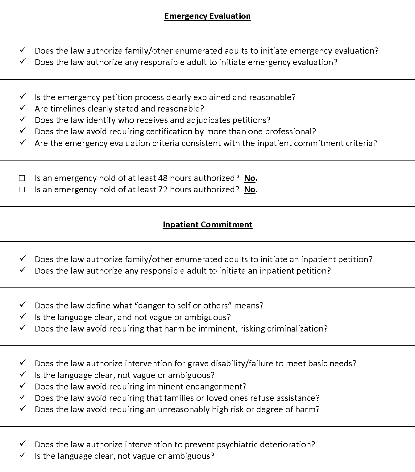 Recommended updates to treatment laws