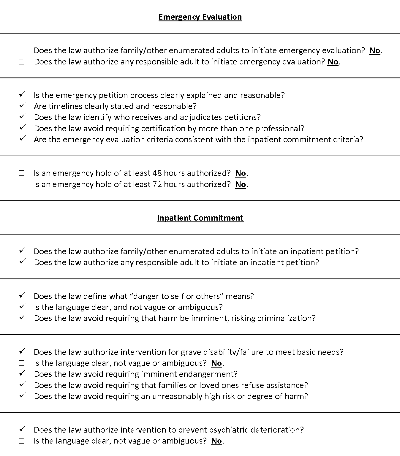 Recommended updates to treatment laws